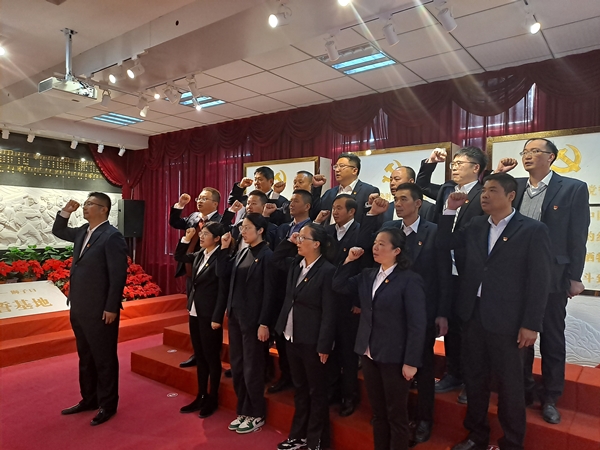 來到獅子口村黨性教育基地的宣誓館,全體黨員佩戴黨徽,面對黨旗,舉起右手,重溫入黨誓詞,并在紀念塔前敬獻花籃。