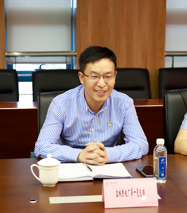 隨后,雙方黨支部在集團(tuán)7樓一號會議室舉行座談交流。于旭對鹽城東方集團(tuán)近年來取得的轉(zhuǎn)型發(fā)展業(yè)績表示高度贊賞,特別是對集團(tuán)黨建工作開展等方面給予了肯定。他表示,鹽城熱電公司與鹽城東方集團(tuán)在能源、熱電等領(lǐng)域一直保持著密切友好的合作關(guān)系,深表榮幸和感謝。希望雙方在接下來的支部共建活動中積極對標(biāo),強(qiáng)化黨建工作互動共享、資源互通,持續(xù)提升黨建工作質(zhì)量,力促雙方取得更大合作成效。