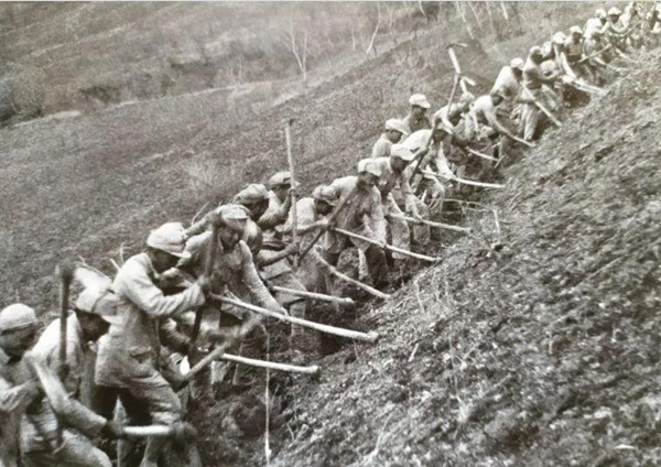 大生產(chǎn)運(yùn)動(dòng)是克服抗日根據(jù)地困難的重要一環(huán),總的方針是“發(fā)展經(jīng)濟(jì),保障供給”。1938年2月,毛澤東在延安召開(kāi)的生產(chǎn)動(dòng)員大會(huì)上發(fā)出了“自己動(dòng)手”的號(hào)召,此后大生產(chǎn)運(yùn)動(dòng)廣泛開(kāi)展起來(lái),這一口號(hào)也隨之演化為“自己動(dòng)手,豐衣足食”。通過(guò)大生產(chǎn)運(yùn)動(dòng),各抗日根據(jù)地克服了嚴(yán)重經(jīng)濟(jì)困難,從而為抗日戰(zhàn)爭(zhēng)及新民主主義革命的勝利奠定了堅(jiān)實(shí)的物質(zhì)基礎(chǔ)。