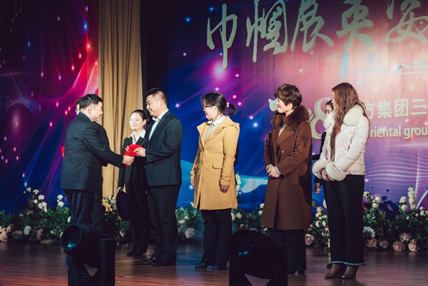 孫為軍總會(huì)計(jì)師為“最受觀眾喜愛的語言類節(jié)目”《東方集團(tuán)第一屆吐槽大會(huì)》《我們是光榮的物業(yè)人》頒獎(jiǎng)。
