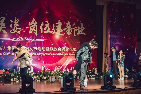 表演間隙,由東方集團(tuán)員工和開發(fā)區(qū)幼兒園老師們合作的互動(dòng)節(jié)目《團(tuán)結(jié)互助》和《集體拋繡球》以其新穎獨(dú)特的形式、幽默風(fēng)趣的互動(dòng),再一次活躍了臺(tái)上臺(tái)下的氣氛。