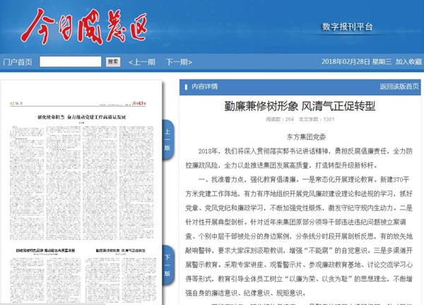 2018年2月28日,今日開發(fā)區(qū)報專版登載了集團黨委書記、董事長張振國在全區(qū)黨的建設暨反腐倡廉工作會議上作的題為《勤廉兼修樹形象 風清氣正促轉(zhuǎn)型》交流發(fā)言。原文網(wǎng)址為: http://epaper.routeryun.com/Article/index/aid/1848751.html ,現(xiàn)全文刊載如下: