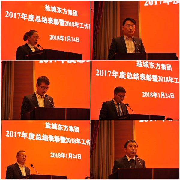 會議對15個先進(jìn)集體和25名先進(jìn)個人進(jìn)行了表彰;播放了東方集團(tuán)2017年發(fā)展回眸、2018年工作展望專題片《轉(zhuǎn)型創(chuàng)新東方紅》;6名集團(tuán)員工代表從不同層面作了表態(tài)發(fā)言;集團(tuán)班子成員依次向張振國遞交黨的建設(shè)責(zé)任書、安全生產(chǎn)責(zé)任書。