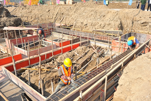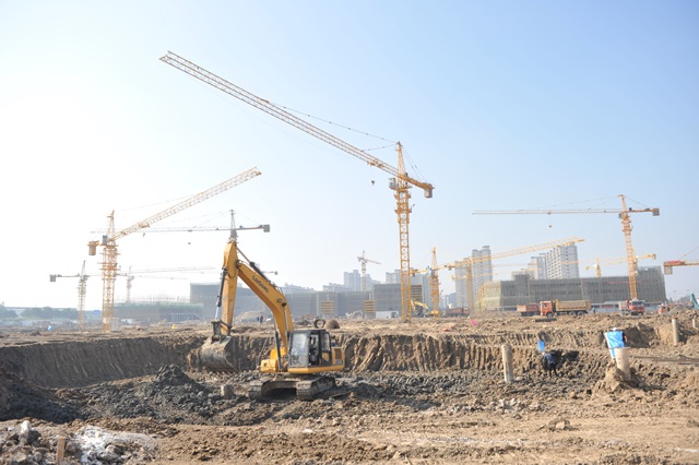 圖為東方機(jī)械電子廠房基礎(chǔ)施工場景