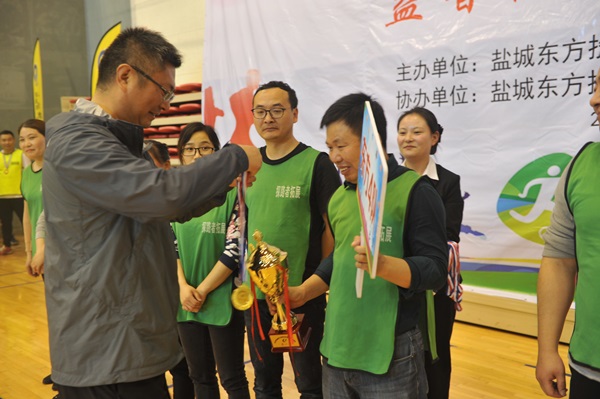 經過一個下午的比賽,選手們發(fā)揮了運動技巧,賽場上妙趣橫生,不斷掀起比賽熱潮,吶喊助威聲浪不斷,平日工作嚴謹認真的員工們活力充沛,熱情澎湃。經過團結、緊張、熱烈、有趣的激烈角逐,決出了冠亞季軍三個團隊獎項。東方4隊、東方8隊、東方7隊分獲團體總分一、二、三名。集團副總經理吳將、集團黨委委員華小軍、集團人力資源管理部部長唐曉麗分別為獲獎團體冠亞季軍頒發(fā)了獎杯及獎牌。