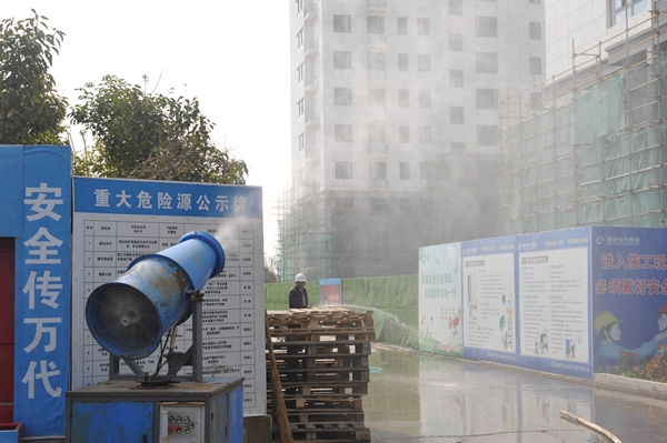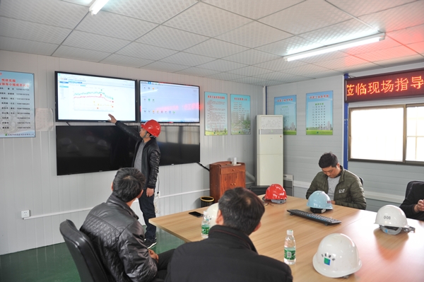 在位于項(xiàng)目部會(huì)議室的“信息指揮中心”,正是智慧工地的“大腦”。墻壁上電視屏幕顯示著工地內(nèi)實(shí)時(shí)視頻和各種數(shù)據(jù),便于對(duì)現(xiàn)場(chǎng)全方位、全天候監(jiān)督管理。項(xiàng)目負(fù)責(zé)人王雷介紹,揚(yáng)塵是施工過(guò)程中的常見(jiàn)問(wèn)題。環(huán)境監(jiān)測(cè)系統(tǒng)能夠?qū)崟r(shí)采集工地上PM2.5、PM10、噪音、溫度、濕度等數(shù)據(jù),當(dāng)揚(yáng)塵監(jiān)測(cè)系統(tǒng)濃度達(dá)到警戒值時(shí),就會(huì)啟動(dòng)自動(dòng)噴淋設(shè)備系統(tǒng),配合采用霧炮機(jī),有效抑制揚(yáng)塵污染。工地內(nèi)安裝的監(jiān)控?cái)z像頭和傳感器,主要控制點(diǎn)分布在作業(yè)層、塔吊、施工電梯等存在安全隱患的部位,可減少塔吊等交叉作業(yè)引起的碰撞沖突,以高科技助力建筑施工安全。