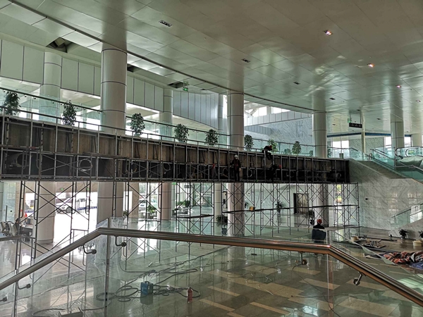 面對時間緊、任務重的現(xiàn)實挑戰(zhàn),東方集團克難求進,在依法依規(guī)、保質保量前提下,開足馬力推進會議中心燈光亮化和3塊LED屏安裝工程。“五一期間,項目管理人員主動放棄休假,與現(xiàn)場50多名工人日夜忙碌、并肩作戰(zhàn),我們一手搶抓工期,科學制定施工方案,對施工單位明確獎懲條款,在充分利用時間的同時合理套搭施工,提高施工效率;一手與施工單位簽訂安全生產責任狀,定時定點巡查安全質量隱患,確保安全‘零事故’和質量‘高品質’。”該項目現(xiàn)場負責人陶偉國介紹道。