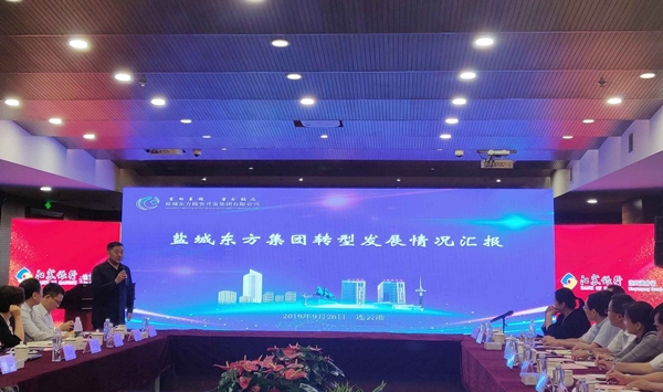 9月26日,由江蘇銀行主辦的“2019地方平臺轉(zhuǎn)型發(fā)展論壇”在連云港舉行,鹽城東方集團(tuán)董事長張振國受邀參會并作“東方集團(tuán)轉(zhuǎn)型發(fā)展”主題匯報演講。江蘇銀行總行、連云港分行主要領(lǐng)導(dǎo)、中誠信首席經(jīng)濟(jì)學(xué)家和連云港當(dāng)?shù)?span lang="EN-US">19家國企代表100余人參加論壇。