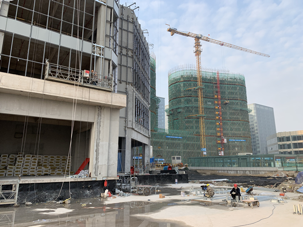 自鹽城東方集團2月13日召開建設工程復(開)工與疫情防控專題工作會議后,東方置業(yè)未來科技城項目部按照市、區(qū)疫情防控各項要求,提前布置各項準備工作,組織疫情防控專題學習、統計外地來鹽人員信息、工地人員出入管理及健康監(jiān)測等。在堅決打贏疫情防控阻擊戰(zhàn)的同時,確保復工條件全部達標,保證項目如期復工;2月14日,未來科技城項目部組織建設單位、監(jiān)理單位、施工單位到我區(qū)SKI項目現場學習復工準備措施;2月15日下午邀請區(qū)住建局對未來科技城項目防疫與復工準備工作進行檢查指導;在東方集團復工檢查組對該項目復工驗收通過后,未來科技城項目已于2月18日正式復工。
