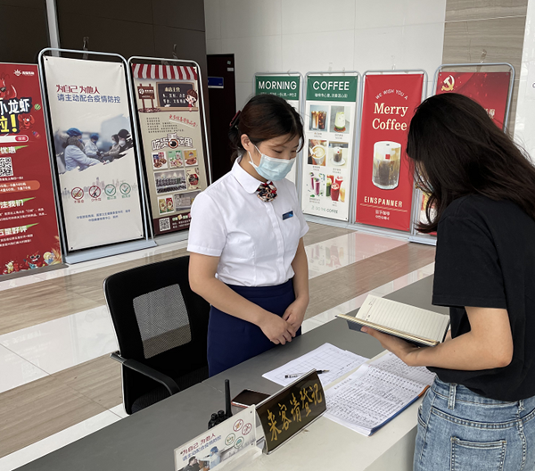集團(tuán)紀(jì)委工作人員到國(guó)際軟件園4號(hào)樓檢查防疫臺(tái)賬。