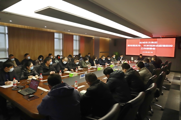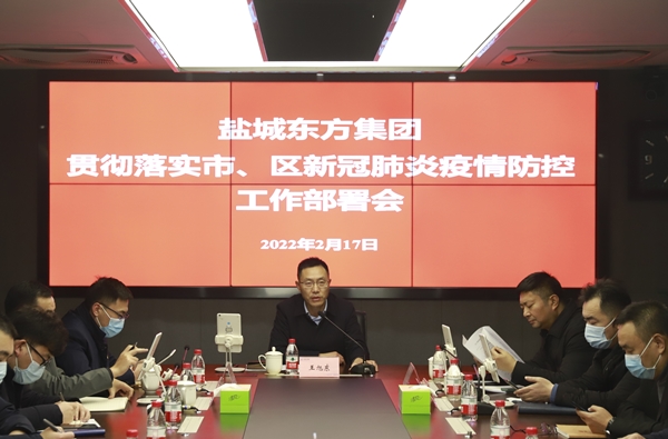 2月17日,鹽城東方集團在7樓一號會議室召開貫徹落實市、區(qū)新冠肺炎疫情防控工作部署會,對疫情防控工作進行再部署、再落實、再強化。集團黨委書記、董事長、總經(jīng)理王旭東主持會議并講話。集團黨委領導班子成員出席會議,集團總會計師列席會議,中層以上人員、子公司經(jīng)營層參加會議。