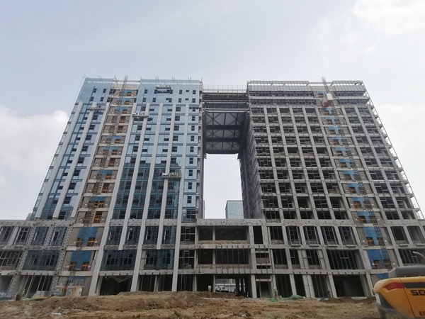 來到未來科技城北區(qū)現(xiàn)場,工人們戴著安全帽和口罩,腰系安全帶,加緊各項施工作業(yè),現(xiàn)場不時響起“鐺鐺”聲。在施工區(qū)域,噴淋、霧炮等作業(yè)和施工同步進行。據(jù)了解,未來科技城北區(qū)項目總占地面積約59畝,總建筑面積近11萬平方米,建設內(nèi)容包含2號樓和5號樓兩棟雙子樓、地下室及附屬工程,其中2號樓為研發(fā)辦公用房,5號樓為服務型公寓及配套商業(yè)。目前,該項目主體結構已通過驗收,正在進行外幕墻裝飾工程、室內(nèi)精裝修工程、機電安裝工程、室外配套工程施工作業(yè)。