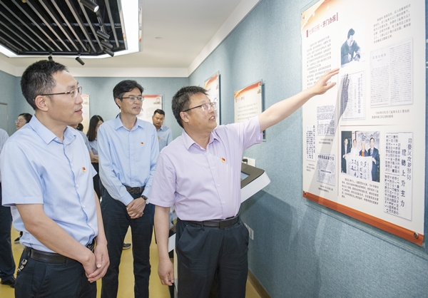 在李強的引導(dǎo)下,集團一支部黨員首先參觀了報社標(biāo)志性展館和點位。在報史館,黨員們感受到了鹽阜大眾報在抗戰(zhàn)烽火硝煙中與革命老區(qū)同呼吸、共命運的壯麗詩篇,回顧了79年來始終堅持黨報姓黨,在書寫時代、謳歌人民中踐行“從大眾中來,到大眾中去”辦報宗旨的光輝歷程。在學(xué)習(xí)強國鹽城學(xué)習(xí)平臺編輯部,“央媒級”展示鹽城形象、講好鹽城故事的學(xué)習(xí)宣傳陣地令人矚目,12個欄目以圖文、視頻、音頻等多種形式,多維度展現(xiàn)習(xí)近平新時代中國特色社會主義思想在鹽城的生動實踐。在新聞發(fā)布廳,《LOVING YANCHENG》鹽城城市形象宣傳片,讓大家沉浸式體驗“鹽城,一個讓人打開心扉的地方”的4K視聽盛宴,充分享受立體式宣傳矩陣的魅力。