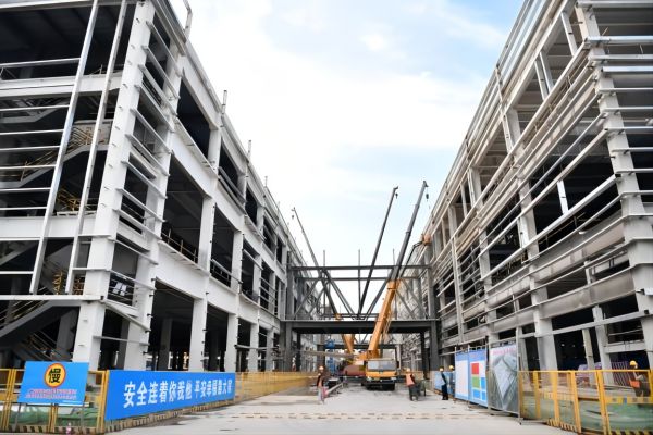 項目占地面積約610畝,總建筑面積約47萬平方米,總投資25.3億美元,其中土建及機電安裝工程投資69億元。建設(shè)包含電極棟、化成棟-1、化成棟-2、模組棟、組裝棟主生產(chǎn)廠房及其配套附屬共17棟單體建筑。目前項目主體鋼結(jié)構(gòu)已封頂,外墻檁條及外墻板正在安裝,室外配套工程完成95%,機電單位除熱油和NMP外,已全面排產(chǎn)和現(xiàn)場施工。計劃11月底完成樓地面及外墻板施工,12月底具備韓方設(shè)備搬入條件。