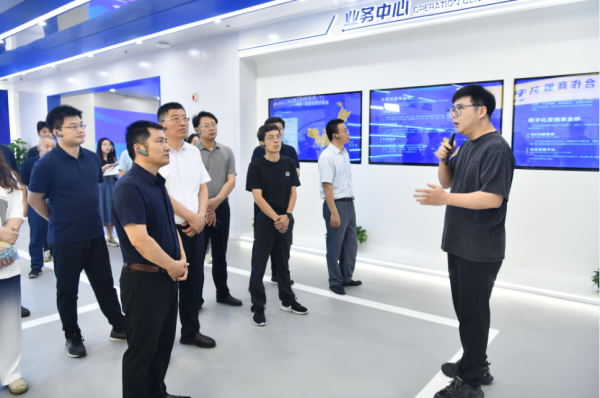 ▲宋一為前來觀摩的領(lǐng)導(dǎo)介紹公司發(fā)展情況