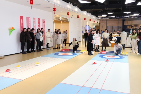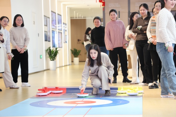 恬淡若水,優(yōu)雅紳士,冰壺又被稱為“冰上國際象棋”?;顒映跏?,教練為大家介紹了冰壺項目的投送要求、比賽規(guī)則等基礎(chǔ)常識。隨后,女職工們被分為四組進行旱地冰壺PK賽,這項比賽不僅考驗團隊的協(xié)作能力,更是一場策略運用的博弈。隊員們屏息凝神,瞄準圓心,俯身握壺,穩(wěn)穩(wěn)推送……一次次的投擲,一次次的碰擊,比賽對局瞬息萬變,每個人在每一局都可以創(chuàng)造變化,不到最后一刻一切皆有可能!