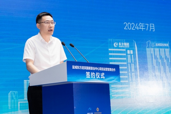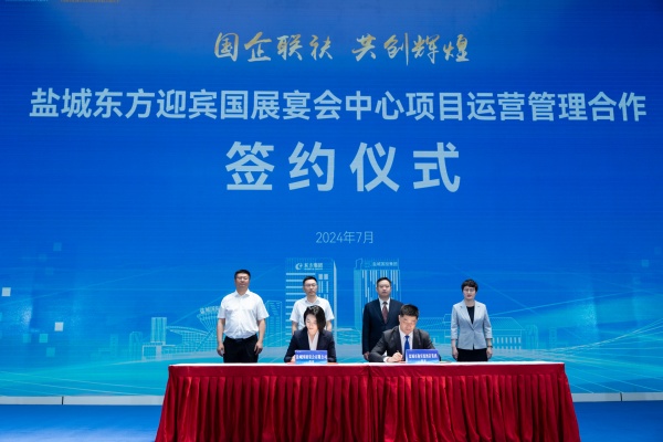 7月12日,鹽城東方集團(tuán)與鹽城國(guó)投集團(tuán)在鹽城國(guó)際會(huì)展中心A館,舉行鹽城東方迎賓國(guó)展宴會(huì)中心項(xiàng)目運(yùn)營(yíng)管理合作簽約儀式。鹽城東方集團(tuán)黨委書(shū)記、董事長(zhǎng)王旭東和鹽城國(guó)投集團(tuán)黨委委員、副總經(jīng)理,鹽城市迎賓館酒店集團(tuán)黨委書(shū)記、董事長(zhǎng)劉晉國(guó)出席簽約儀式并分別致辭。