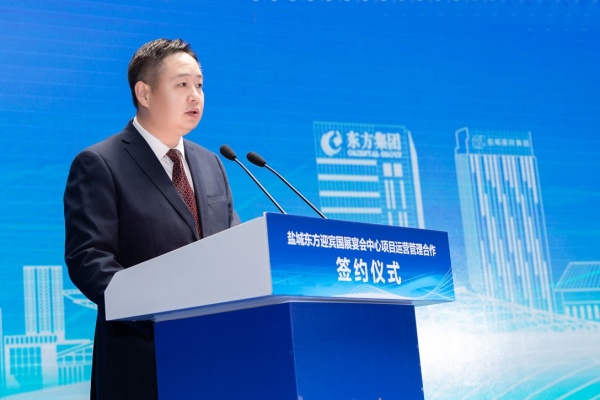王旭東致辭:近年來(lái),鹽城東方集團(tuán)以“繡花功夫”運(yùn)營(yíng)管理會(huì)展中心,持續(xù)提升場(chǎng)館使用質(zhì)效,積極創(chuàng)樹(shù)會(huì)展品牌形象。今年以來(lái),集團(tuán)更是將攻堅(jiān)突破會(huì)展經(jīng)濟(jì)列為全年“一、三、六”工程中的“三項(xiàng)重點(diǎn)”之一,找準(zhǔn)“會(huì)議、展覽、賽事、宴會(huì)”四大功能定位,并把建設(shè)宴會(huì)中心、布局宴會(huì)產(chǎn)業(yè),作為全面提升會(huì)展中心市場(chǎng)化經(jīng)營(yíng)效能的主要發(fā)力點(diǎn)和重要增長(zhǎng)極。為謀求高質(zhì)量發(fā)展,鹽城東方集團(tuán)與鹽城國(guó)投集團(tuán)強(qiáng)強(qiáng)合作,與國(guó)投旗下運(yùn)營(yíng)經(jīng)驗(yàn)豐富的市迎賓館酒店集團(tuán)反復(fù)交流、真誠(chéng)溝通,就項(xiàng)目委托運(yùn)營(yíng)管理達(dá)成合作共識(shí)。他希望雙方精心規(guī)劃、精致建設(shè)、精細(xì)管理、精美呈現(xiàn),共同將鹽城東方迎賓國(guó)展宴會(huì)中心打造成為城東乃至全市高端宴會(huì)市場(chǎng)的璀璨新星,合力為鹽城經(jīng)開(kāi)區(qū)打造一處獨(dú)特的城市“新地標(biāo)”,增添一道靚麗的城市“風(fēng)景線”。