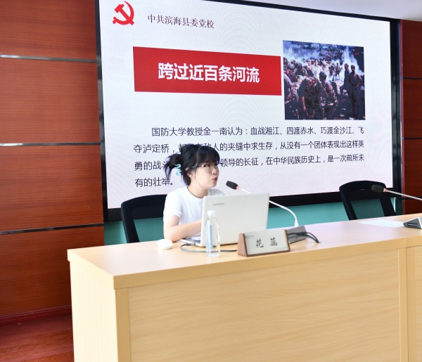 活動(dòng)現(xiàn)場(chǎng),江蘇省“百名講師話國(guó)防”特聘講師、“鹽城市十佳講師”、濱海縣委黨校講師花蕊以“弘揚(yáng)長(zhǎng)征精神、走好新時(shí)代的長(zhǎng)征路”為主題,貫通歷史與現(xiàn)實(shí),運(yùn)用豐富的史實(shí)、生動(dòng)的案例、翔實(shí)的數(shù)據(jù)講述了長(zhǎng)征的歷史回顧、長(zhǎng)征路上的著名歷史事件及新時(shí)代長(zhǎng)征精神,深刻闡述了革命先輩不畏艱險(xiǎn)的長(zhǎng)征精神和自強(qiáng)不息的民族品格,使大家受到了一次全面深刻的思想淬煉和精神洗禮。