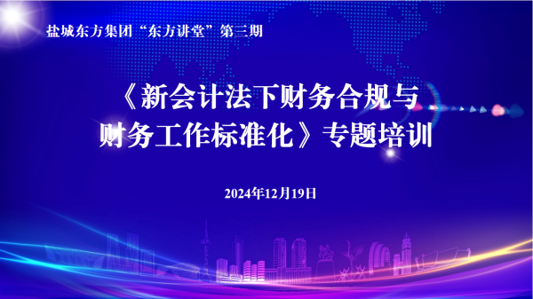 為加強(qiáng)財(cái)務(wù)基礎(chǔ)工作,提升財(cái)務(wù)人員基本素質(zhì)和個(gè)人能力,強(qiáng)化財(cái)務(wù)隊(duì)伍建設(shè),根據(jù)《鹽城東方投資開發(fā)集團(tuán)有限公司2024年培訓(xùn)計(jì)劃》總體安排,12月19日下午,集團(tuán)邀請(qǐng)財(cái)務(wù)管理部部長金珍霞為集團(tuán)財(cái)務(wù)條線人員開展鹽城東方集團(tuán)“東方講堂”第三期——《新會(huì)計(jì)法下財(cái)務(wù)合規(guī)與財(cái)務(wù)工作標(biāo)準(zhǔn)化》專題培訓(xùn)。集團(tuán)及子公司財(cái)務(wù)條線50余人參加培訓(xùn)。