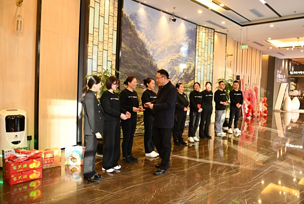 王旭東一行繼續(xù)來到安通公司、亞朵酒店、麗楓酒店、濱河公園,每到一處,都與在崗員工熱情握手,詳細了解節(jié)日期間的值班值守和后勤保障情況,強調(diào)要強化服務保障,抓好安全生產(chǎn),統(tǒng)籌做好春節(jié)期間的各項工作,確保度過一個平安、祥和、歡樂的春節(jié)。