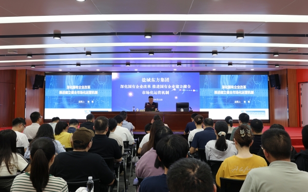 為深入貫徹落實黨中央、國務院及省委省政府關于深化國有企業(yè)改革的系列決策部署,準確理解和把握如何高質量完成國企改革深化提升行動,9月12日下午,鹽城東方集團在未來科技城A1A2棟4樓中會議室舉辦了“深化國有企業(yè)改革 推進國有企業(yè)建立健全市場化運營機制”專題培訓。集團各部門及子公司員工共120余人參加。