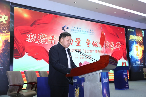 張振國(guó)首先代表東方集團(tuán)領(lǐng)導(dǎo)班子,向蒞臨比賽現(xiàn)場(chǎng)的各位領(lǐng)導(dǎo)、嘉賓和評(píng)委們表示熱烈的歡迎和感謝,向成功晉級(jí)決賽的兩隊(duì)選手和在座嘉賓表示最誠(chéng)摯的問(wèn)候和祝愿。他表示,近年來(lái),集團(tuán)致力推動(dòng)企業(yè)文化戰(zhàn)略與企業(yè)發(fā)展戰(zhàn)略協(xié)調(diào)一致,本次開(kāi)展的青年員工辯論賽,正是“東方為我搭平臺(tái),我為東方添光彩”企業(yè)文化的充分體現(xiàn)。希望兩隊(duì)選手賽出風(fēng)格、賽出成績(jī)、賽出風(fēng)采,樹(shù)立有口才、有思想、有擔(dān)當(dāng)?shù)男聲r(shí)代青年形象,為集團(tuán)轉(zhuǎn)型升級(jí)事業(yè)、全區(qū)高質(zhì)量發(fā)展大業(yè)、中華民族復(fù)興偉業(yè)貢獻(xiàn)自己的青春力量。