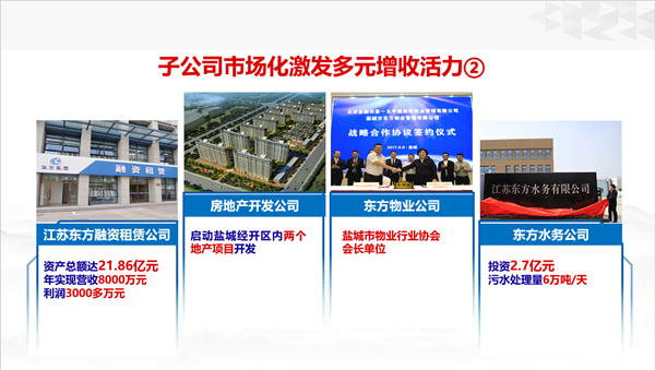 圍繞優(yōu)化結(jié)構(gòu),該集團下屬子公司沿海東方置業(yè)成功引入悅達地產(chǎn)集團15億元資本注入,目前正在啟動自主上市的各項準備工作;為類金融板塊的5家子公司量身定制激勵性考核、薪酬制度,引導(dǎo)這些企業(yè)積極參與市場化競爭,促進了盈利能力的有效提升,僅近3年就實現(xiàn)新增利潤超2億元;地產(chǎn)開發(fā)板塊的燕舞東方房地產(chǎn)開發(fā)公司則積極與深圳華地、天津渤海國資、上海新城控股等國內(nèi)知名房地產(chǎn)商合作,投資建設(shè)商業(yè)地產(chǎn)項目,在優(yōu)化股權(quán)結(jié)構(gòu)、實現(xiàn)投資增效的同時,為集團自主開發(fā)積累經(jīng)驗、儲備人才,全力做大做強實力板塊。