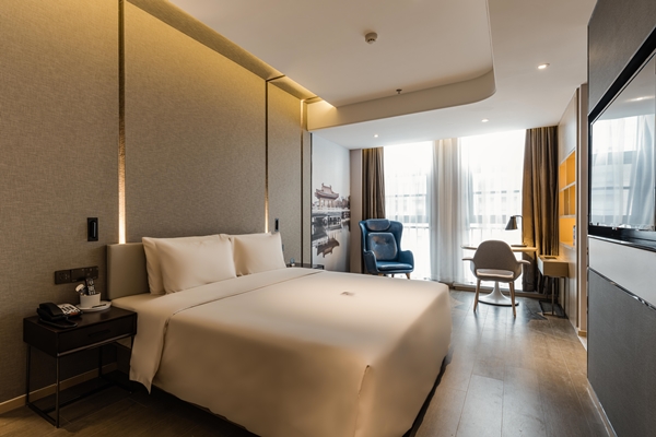 隨著高標準起步、高效率推進、高質(zhì)量建設,項目如期竣工,為酒店營收穩(wěn)定增長奠定了堅實基礎。酒店于2020年7月23日正式營業(yè),是以“閱讀、屬地攝影”為主題的人文酒店。目前酒店擁有優(yōu)質(zhì)客房153間,設有百人位自助餐廳、豪華會客包廂、室內(nèi)電子高爾夫體驗館以及多功能會議室,此外健身房、活動室等一應俱全,滿足客人全天候、高品質(zhì)的工作、生活、休閑、娛樂需求。