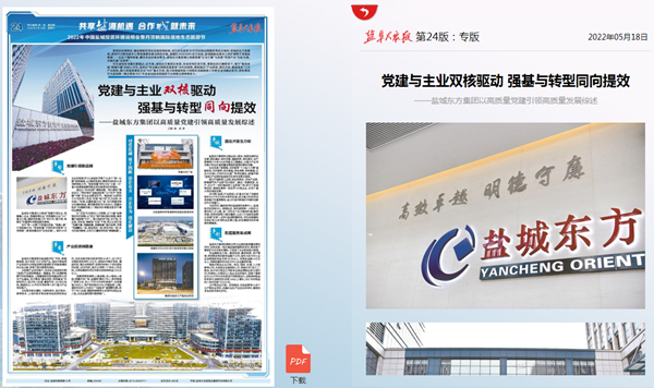 今天,鹽阜大眾報以《黨建與主業(yè)雙核驅(qū)動  強(qiáng)基與轉(zhuǎn)型同向提效》為題,整版聚焦報道鹽城東方集團(tuán)堅持黨的領(lǐng)導(dǎo)和加強(qiáng)黨的建設(shè),貫穿國企改革發(fā)展全過程,引領(lǐng)實(shí)現(xiàn)高質(zhì)量跨越式發(fā)展的成果。