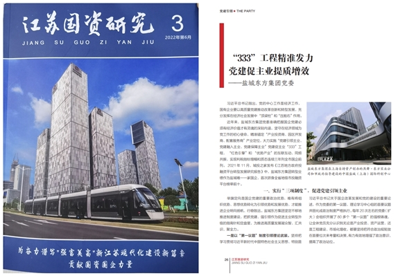 日前,省國有企業(yè)發(fā)展改革研究會主辦的《江蘇國資研究》雜志6月刊“黨建引領(lǐng)”欄目,發(fā)表鹽城東方集團(tuán)黨委署名文章——《“333”工程精準(zhǔn)發(fā)力 黨建促主業(yè)提質(zhì)增效》,聚焦鹽城東方集團(tuán)堅持以高質(zhì)量黨建引領(lǐng)高質(zhì)量發(fā)展,推進(jìn)黨建工作和業(yè)務(wù)工作互融互促的生動實踐。