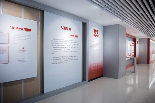 這是展示成果,賦能未來(lái)的戰(zhàn)略部署。該館除大篇幅、廣角度、多元化開(kāi)展黨史學(xué)習(xí)教育、國(guó)企黨建引領(lǐng)等宏觀內(nèi)容外,還因企制宜、因地制宜地展示東方元素。一方面,從不同側(cè)面、用多種形式展示集團(tuán)轉(zhuǎn)型發(fā)展取得的重大成就;另一方面,集中展陳集團(tuán)“高效卓越·明德守廉”核心價(jià)值觀、“創(chuàng)新強(qiáng)企、人才興企、文化立企”重點(diǎn)戰(zhàn)略、集團(tuán)“十四五”發(fā)展規(guī)劃等,讓全體員工對(duì)未來(lái)發(fā)展更加充滿信心。