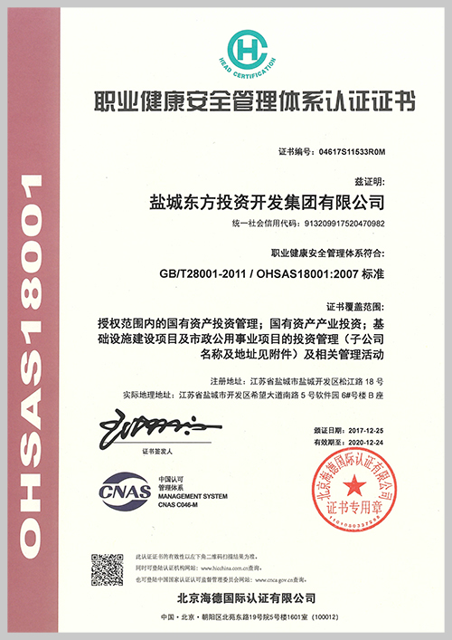 集團通過質量管理體系ISO9001、環(huán)境管理體系ISO14001、職業(yè)健康安全管理體系OHSAS18001“三標一體化”認證