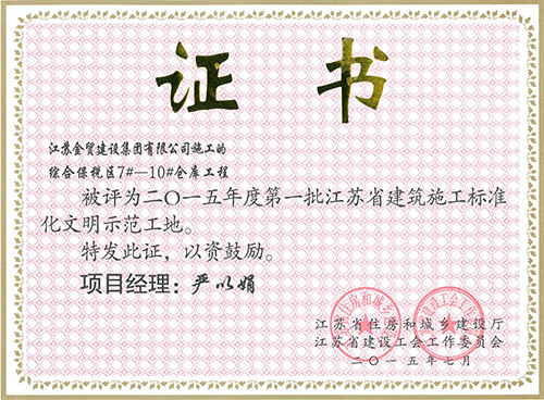 東方置業(yè)公司承建的韓資工業(yè)園鄰里中心A、B、C宿舍、后勤樓、綜保區(qū)1#多層電子廠房榮獲2015年度第一批江蘇省建筑施工標準化文明示范工地