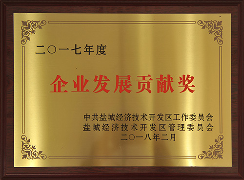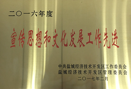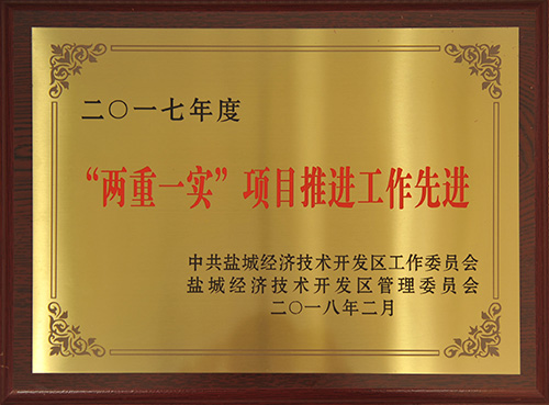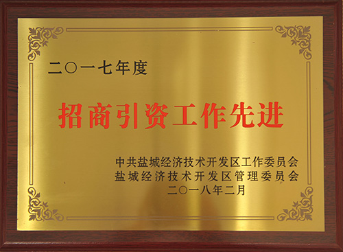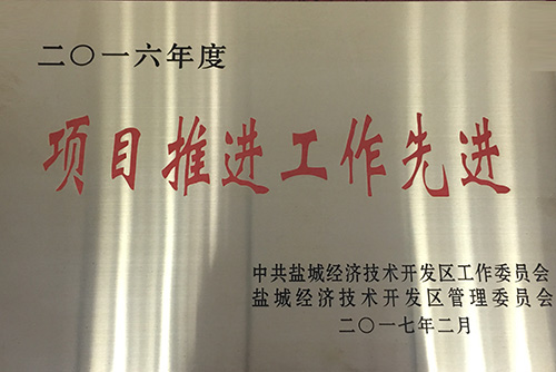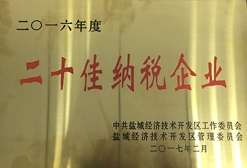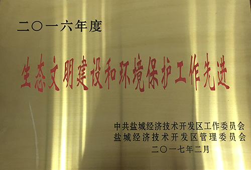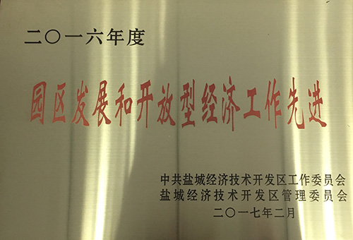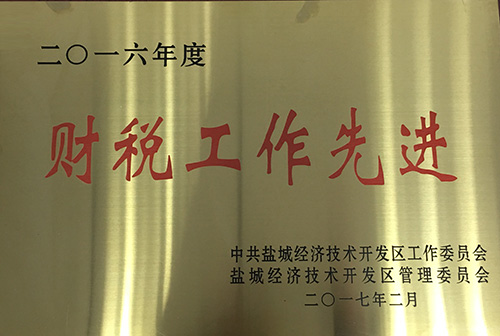 榮獲2016年度鹽城經濟技術開發(fā)區(qū)二十佳納稅企業(yè)、項目推進工作先進集體、園區(qū)發(fā)展和開放型經濟工作先進集體、民生幸福和社會事業(yè)先進工作集體、生態(tài)文明建設和環(huán)境保護工作先進集體、宣傳思想和文化發(fā)展工作先進集體、財稅工作先進集體七項集體表彰