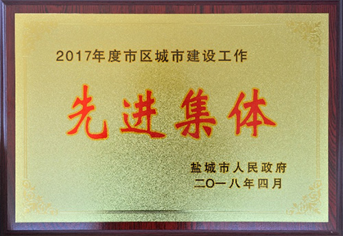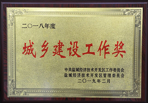 榮獲2017年度鹽城市“城市建設工作先進集體”稱號 榮獲2017年度鹽城經濟技術開發(fā)區(qū)“綜合工作先進”獎