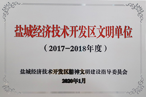 榮獲2017-2018年度鹽城經濟技術開發(fā)區(qū)文明單位。