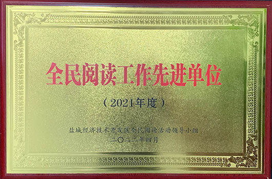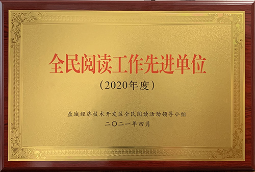 集團榮獲鹽城經開區(qū)全民閱讀活動領導小組頒發(fā)的2020年度“全民閱讀工作先進單位”獎項。 集團榮獲鹽城經濟技術開發(fā)區(qū)黨政辦公室頒發(fā)的2020年度“全區(qū)宣傳思想文化工作先進集體”獎項。