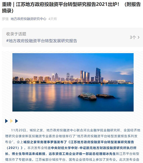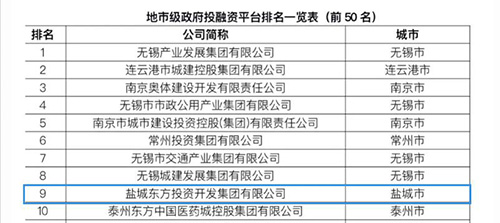 集團轉型發(fā)展業(yè)績位列江蘇省地級市政府融資平臺榜單第九位,成為鹽城市唯一一家躋身該榜單前十的國企。