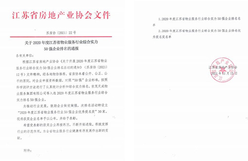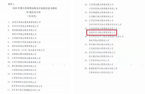 東方物業(yè)公司成功躋身“2020年度江蘇省物業(yè)服務行業(yè)綜合實力50強企業(yè)”榜單。