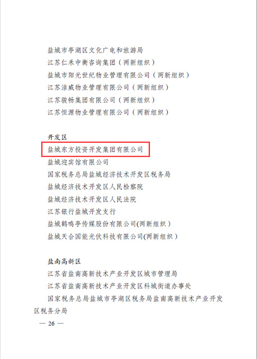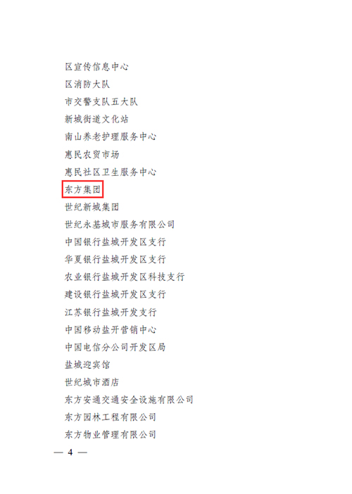 鹽城東方集團獲得“2019—2020年度鹽城經濟技術開發(fā)區(qū)文明創(chuàng)建先進集體”榮譽稱號。
