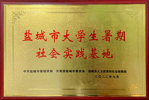 獲得中共鹽城市委組織部、共青團鹽城市委員會、鹽城市人力資源和社會保障局聯(lián)合頒發(fā)的“鹽城市大學生暑期社會實踐基地”稱號。