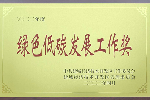 集團榮獲鹽城經濟技術開發(fā)區(qū)2022年度綜合工作先進獎,同時獲得綠色低碳發(fā)展工作單項獎。